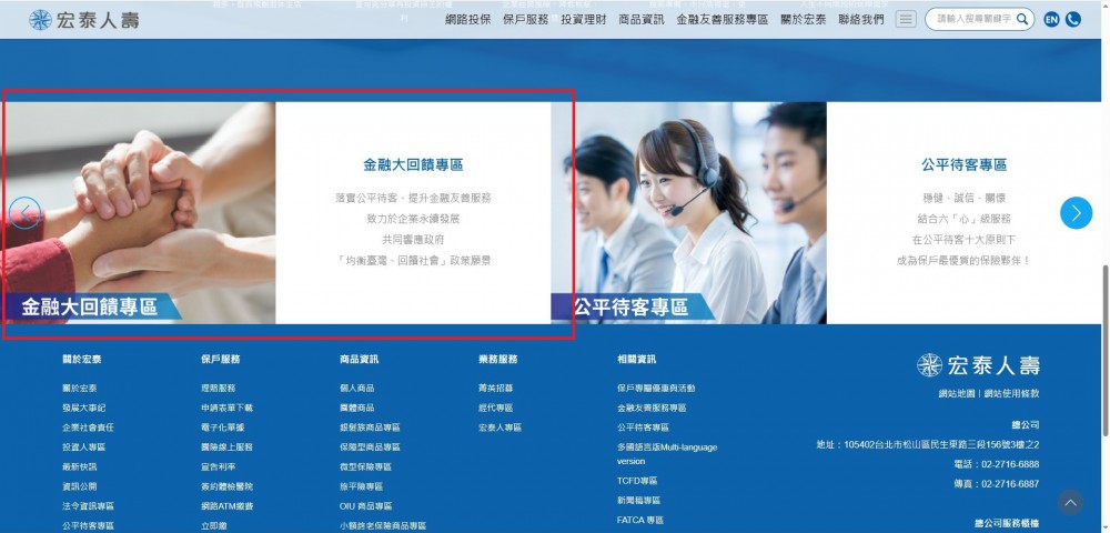 圖說 : 宏泰人壽積極整合公平待客、金融友善服務及公益等相關計畫,並於官網開設「金融大回饋」專區。